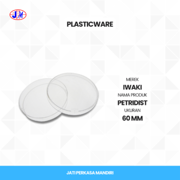 Petridish IWAKI 60 mm untuk kultur mikroorganisme dan eksperimen biologis.