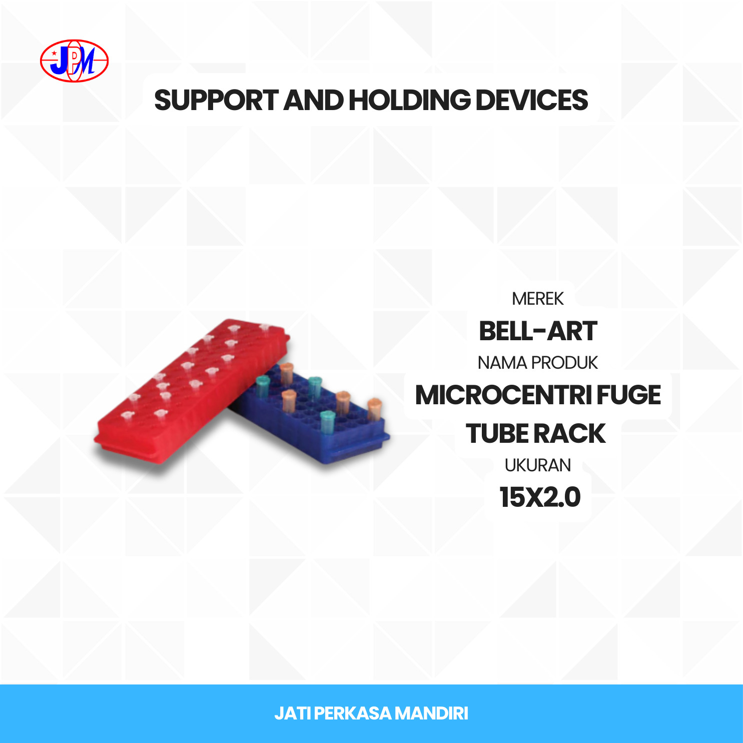 Microcentri Fuge Tube Rack dari Bell-Art dirancang untuk menahan tabung mikro sentrifuge pada posisi yang stabil dan aman. Ideal untuk penggunaan di laboratorium dengan ukuran 15X2.0″. Spesifikasi :