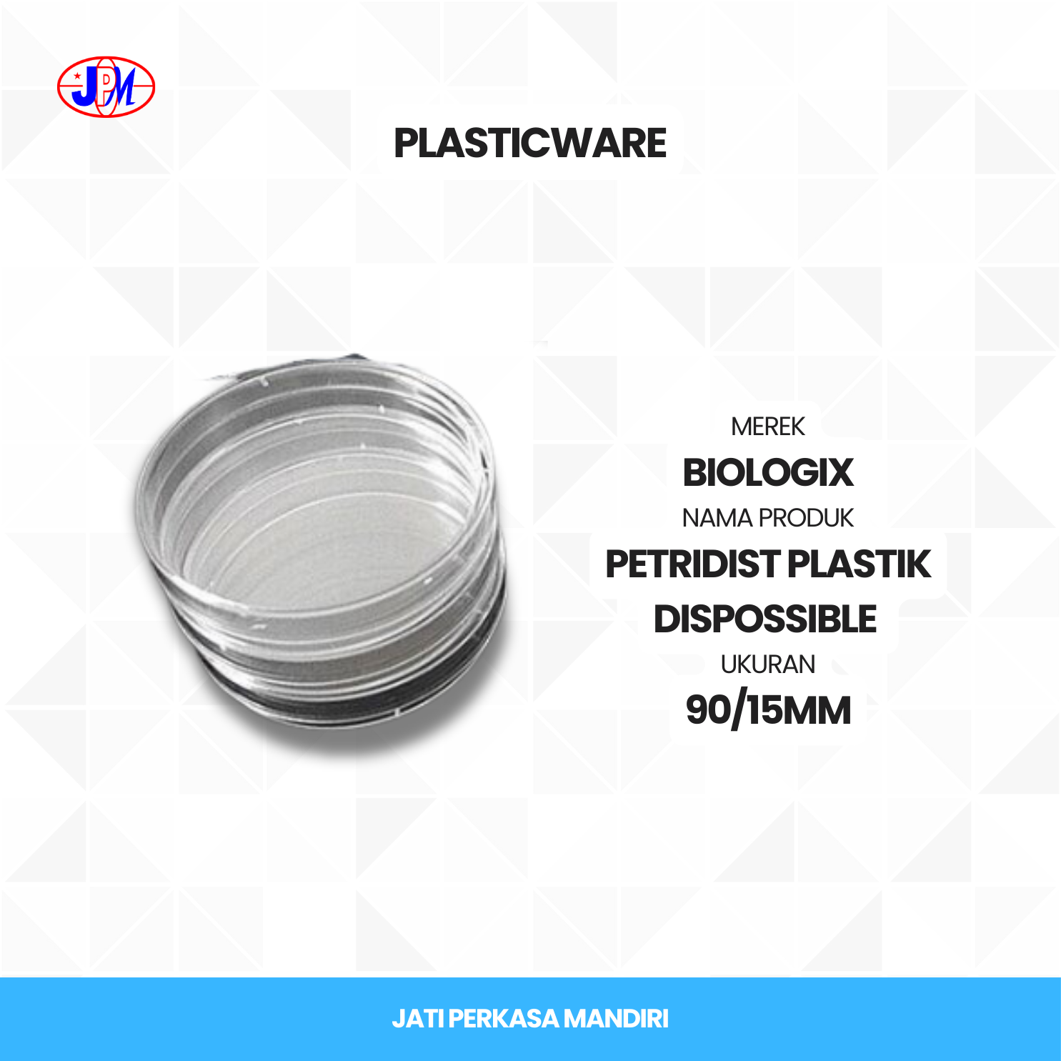 Petridist Plastik Disposable Biologix ukuran 90/15mm dirancang untuk penggunaan sekali pakai dalam laboratorium mikrobiologi. Terbuat dari plastik berkualitas tinggi, ideal untuk kultur mikroorganisme dengan ketahanan yang baik terhadap cairan dan bahan kimia.  Spesifikasi :