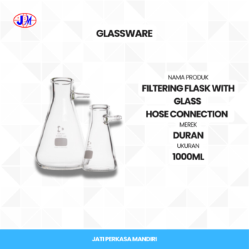 Filtering Flask Duran 1000 ml dengan sambungan selang kaca untuk filtrasi.