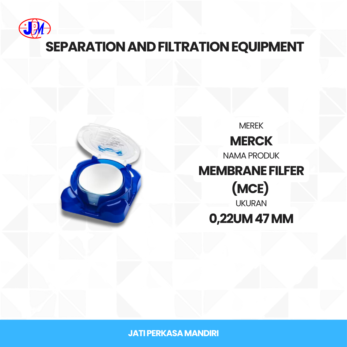 Membrane Filter Merck adalah solusi filtrasi berkualitas tinggi untuk aplikasi laboratorium dan penelitian. Dengan ukuran pori variatif, filter ini memastikan penyaringan cairan yang presisi, cocok untuk analisis mikrobiologi, kimia, dan farmasi. Spesifikasi :